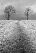 The 42nd parallel passes just north of Plymouth, Massachussets. There, tucked in the souhternmost corner of the town of Duxbury, an old farm now serves as a preserve and a walking area. Another place I had spent a lot of time driving by, I have found it has a lot of very interesting scenes. The one showed here was taken late in the winter. The almost perfect positioning of the path, the two trees and the clouds behind cried out to be captured. Filtration was used to darken the light blue sky and the winter-bleached grass.