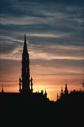 Another of my favorite images, this is of the steeple over the Town Hall on the Grande Place in Brussells, a 14th century stone edifice. Another of those serendipitous shots, the vivid colors in the sky behind lasted for only a few minutes, and I have never seen skys like this since. I shot it from the steps of the Cathedral of St. Michel in September of 1979. Later, when printing the negative, I was chagrined to find several small spots on the slide which I was unable to clean, no matter how hard I tried. Finally, I examined the slide under a microscope and was surprised to discover that these "dots" were, in fact, small helium-filled balloons being released by a group of school children. Under each balloon was tied a small postcard with a stamp and the child's return address.