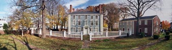In Medford, not a half-mile from the campus of Tufts University, stands the Isaac Royal house. Royal, alledgedly, was the richest man in the British Colonies in the middle of the 18th century, and his house remains as strong evidence of that claim. In the center is the main house, to the right are found the slave's quarters, while a modern neighborhood in Medford is seen encroaching upon the ramparts to the left. A friend, Jon Detwiler of Buttonwood Renovations, was commisioned to do a major restoration and conservation of the structure, and the results are seen here. This is a nearly 180° panorama of the site, stitched together from 7 carefully composed images.